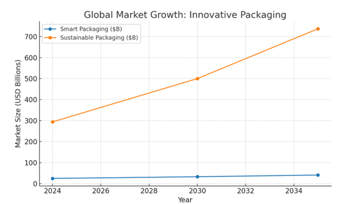 | Sustainable packaging doubling ($313→ $557B by ~2034) | Towards Packaging, The Research Insights (Towards Packaging) |